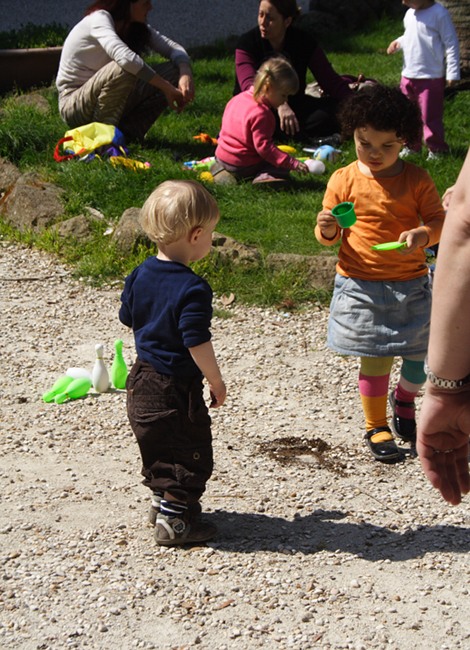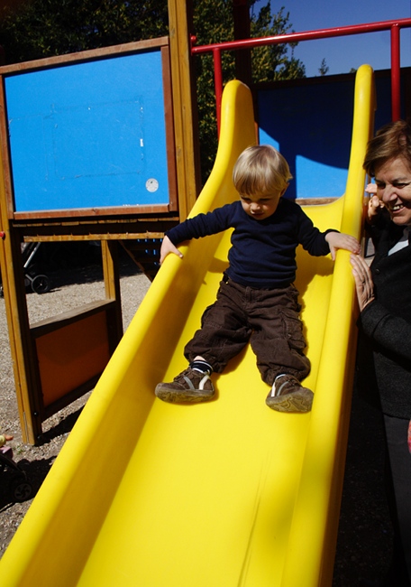 Grandma is here! I call her „oa“. Today she wanted to read a story with me about the little cat. But I wasn’t interested at all but rather read a book with a lot of „dn-dn“ (trains). So Grandma had to read the story about the little cat on her won. At the park I ran around a lot, I went down the slide, sat on the swing and shovelled stones with plastic teacups of little girls. Finally, grandma could witness with her own eyes all the great things I am already able to do!