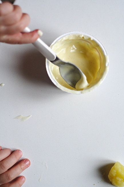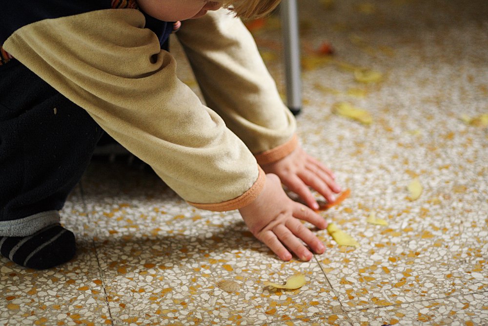 Last night did not go as planned. Albert sort of fell out of his tent (which we put on a guest bed), without any serious harm but being waken up and a badly surprised. However, he was not able to fall asleep afterwards, ended up throwing up and climbing over furniture after that, wide awake and happy. My working plans for the evenings were not working out at all! This morning, I was really tired, woke up with a headache and stayed in bed very long, executing bad pedagogy by letting Albert watch a thousand train videos. However, when I was able to creep out of my shell, we had a really good time cooking in the kitchen. Albert helped me cooking and distributed the potatoe peel on the kitchen floor, collected them and put them into different pots. Also, Albert wanted to eat potatoes. I enjoyed watching him trying to move away the steam from the hot potatoes with his fingers. As you can see below, he had some yoghurt afterwards. I could not refrain from taking some pictures! While doing that, I realized that I just let him eat, I did not intervene, I just watched and talked with him occasionally. With me being behind the camera, he gets a lot more space to do things. That is – though certainly not always – another good thing the camera does!