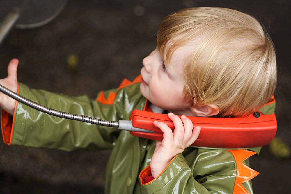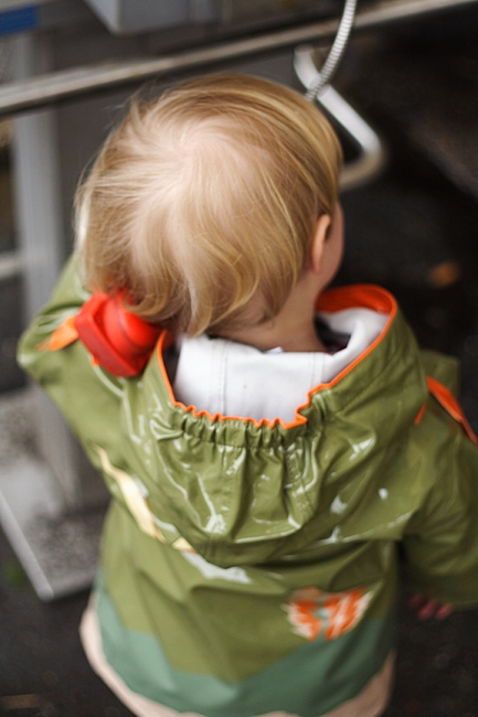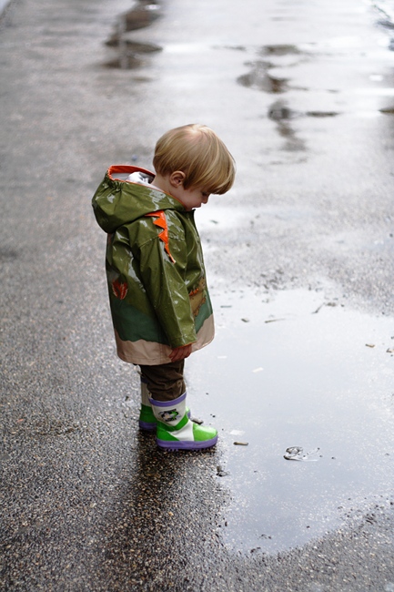 We went to the town centre this morning, Albert and me. In the beginning we had a pretty nice time. Generally, we were birthday present hunting for Daddy. In the end, it turned out quite tricky while the ongoing rain become stronger, Albert got less interested and I had trouble getting both some shopping done and keeping him rather entertained. In the end, he did not get a lot of walking to do and so I put him down to walk home the last meters. He had a lot of interest for all the puddles on the way and I tried to prevent him from getting completely soaked and sitting in various amounts of dog poop.