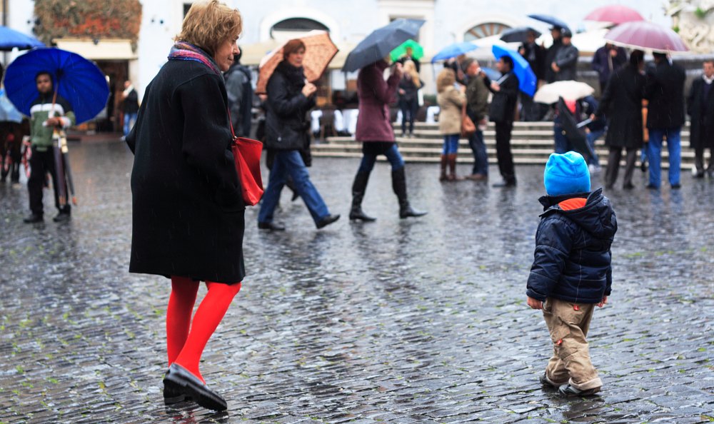 At some point, he just thought it was fun to sit on the pedestrian walk. This was the point when I lost patience, put him bag to his feet and started to loudly complain about the weather, about Albert not wanting to get up and… basically just had an impatient moment. What really made my blood boil was when an elderly italian lady came up to the scene and started to give me some italian list of intstructions of what I would have to do now. She even got somewhat annoyed when I totally ignored her. Of course I did not understand most of what she said (and I did not care what it was anyway), but I understood that she thought he was tired and therefore was not wanting to walk. Then, little Albert redid the same joke again, sat down and laughed when I told him to get up and walk. I think he had a real fun time. I got so fed up with everything at that moment! At that point, I was not only fed up with that lady but also about previous situations that I found bewildering. Why can´t you have your own situations with your child here? Why do people always need to comment on things? Why is everyone getting nervous if your child is running around a few meters away from you if there is no danger around? Why are all the italian kids on the playground always looking so neat and are not allowed to get dirty and the mothers/grannies cast a bewildered look at my dirty son? And why are most mothers commenting and controlling their kids on the playground all the time? I am allright with other people deciding for what they think is best for their kids, but please, give me some space here if I am having an impatient moment in the rain and next to the dog poop! I am not saying I was behaving great here, but at that very moment, all I had got was my impatient self and the desire to complain and arrive at home. I am not saying I am right at all, but why is a stranger feeling so right about telling me off? I know more than enough that I am not a very patient mother and I am trying hard to better myself but I don’t think I need this type of help! The very poor tired child who thought sitting on the sidewalk was fun, was laughing his head off 10 minutes later, jumping on the bed and watching me act like a dying swan to some accidental classical music on the radio. It seems he has survived my impatience. I hope so did the italian lady.