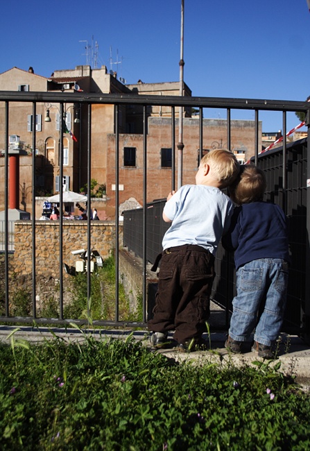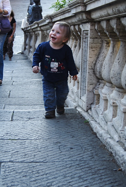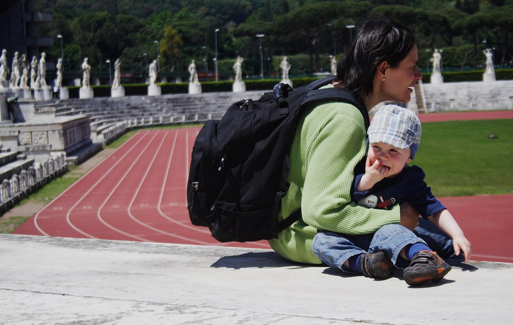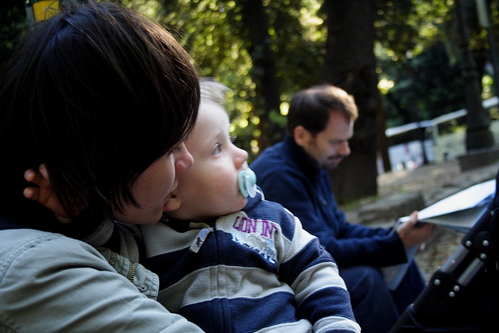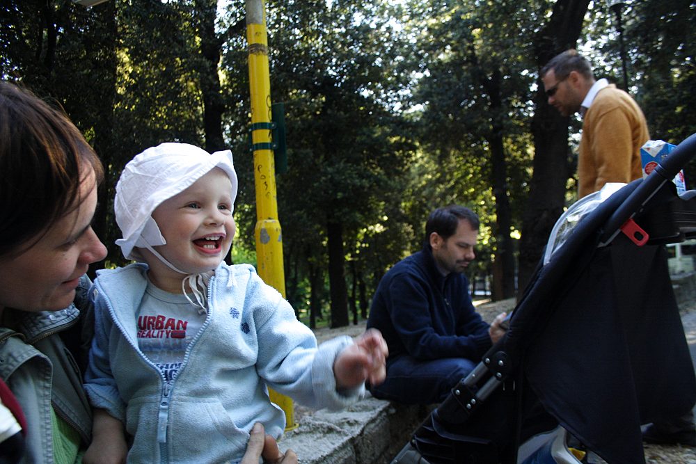 Heute war uebrigens ein wesentlich schönerer Tag. Wir hatten einen Park ganz fuer uns weil es zeitweise regnete und die Italiener in diesem Fall plötzlich wie vom Erdboden verschlungen vom Spielplatz verschwunden sind. Albert hat sich grandios nass gemacht (hoch leben die Wechselklamotten) und legte, als wir gemeinsam auf einer Bank landeten, sogar seinen Kopf auf meinen Schoss – das war wunderbar!