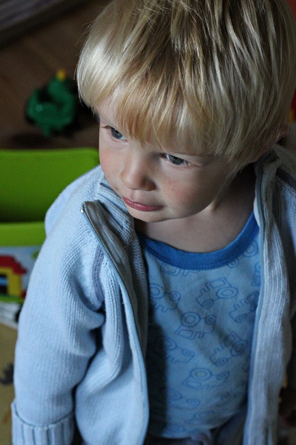 Albert hat fertig gebadet, ist angezogen und will nun mit Papa lesen. „Bukk“, sagt er und geht zum Bücherregal. Er kramt ein wenig darin herum und sagt „ohmeigat“ (=oh my god). Herrlich!