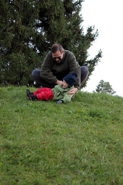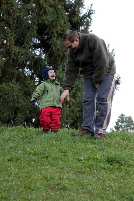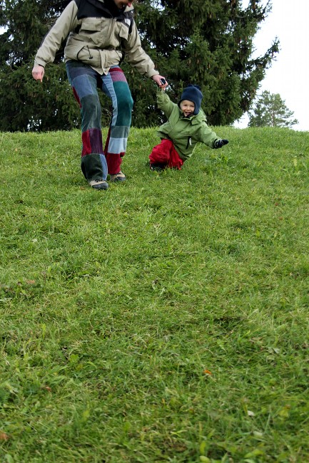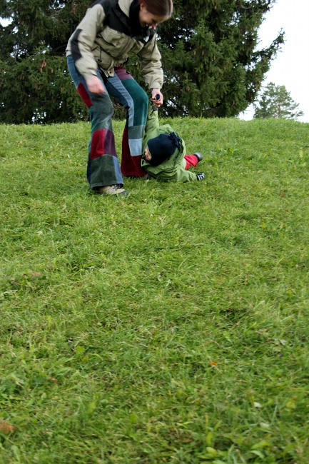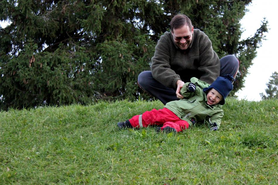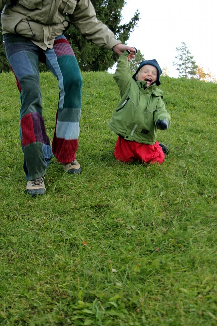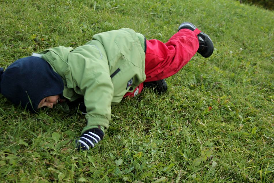 Freitags holen wir Albert bereits um 15:00 Uhr vom Kindergarten ab und haben dann noch den halben gemeinsamen Nachmittag vor uns. Gestern haben wir eine kleine Runde im „Dorf“ gedreht und dabei auf dem Spielplatz halt gemacht. Besonderer Hit: von dem kleinen Hügel am Spielplatz runterkullern! Großes Kino (wie Tante Claudi sagen würde)!