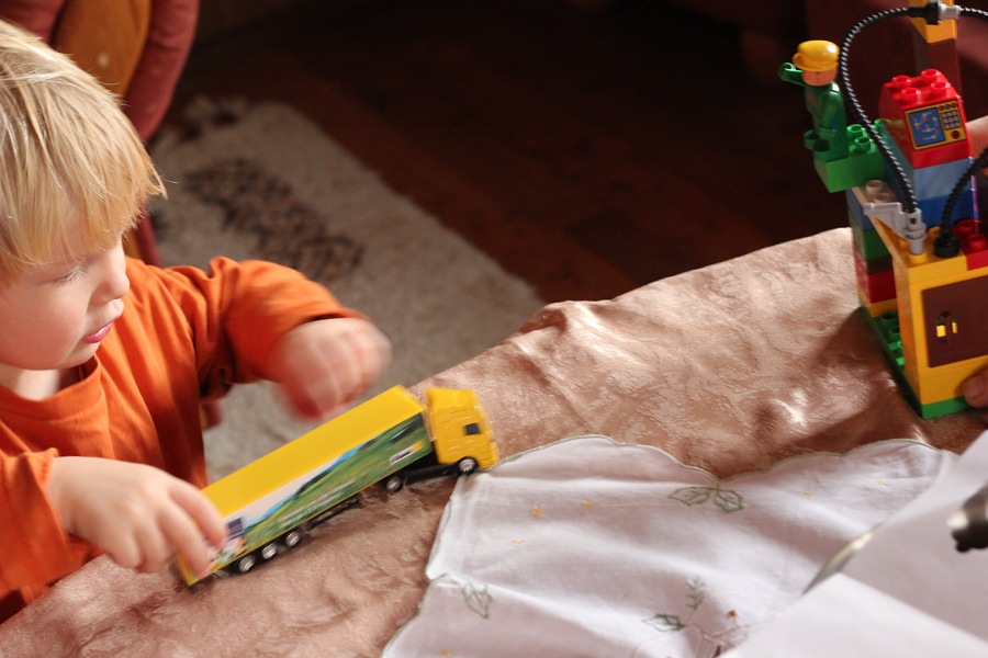 Wie man sieht, gab es bei den Grosseltern nicht nur Aussen- sondern auch Innenaktivitäten, wie z.B. künsterisch-gestalterische Workshops mit Oma, Probefahrten mit Opa’s Sammel-LKW’s sowie Lesen mit Mama.