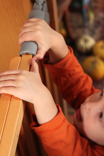Besonders wichtig zu erwähnen ist die Sicherheitstür an der Treppe, die Opa eigens für Albert installiert hat. Nachdem Albert wusste, dass diese Tür von Bedeutung war, mussten wir bei jedem Treppabstieg die Treppe unbedingt hinter uns schliessen – auch wenn ich diese akrobatische Übung (Kind festhalten, selbst nicht runterfallen, Tür schliessen) lieber bleiben gelassen hätte. Albert musste diese Tür IMMER schliessen. Schließlich, das lernt man eben schon in jungen Jahren: was sein muss, muss sein!