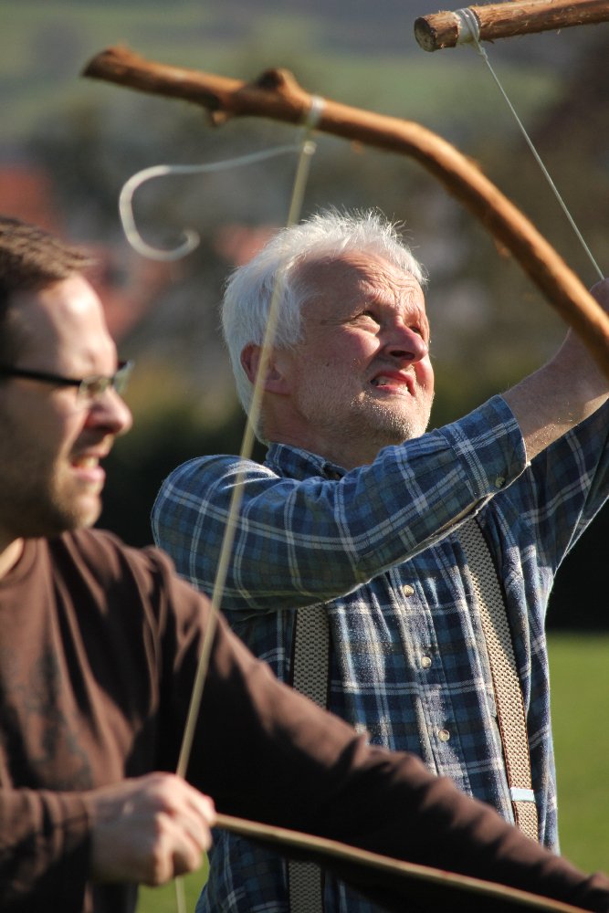 Bei unserem Besuch in Vacha bei Oma und Opa hat sich die ganze Familie dem Thema Bogenschiessen gewidmet. Ausgangspunkt war Opa’sPfeil- und Bogenherstellung. Man sollte nicht meinen, was da alles fuer erstaunliche Gesichtsausdruecke entstehen können!