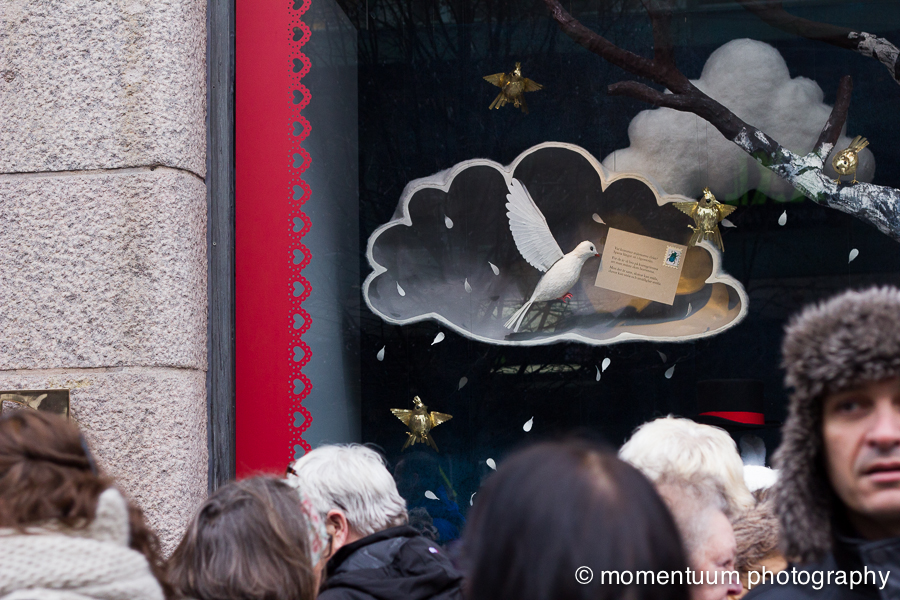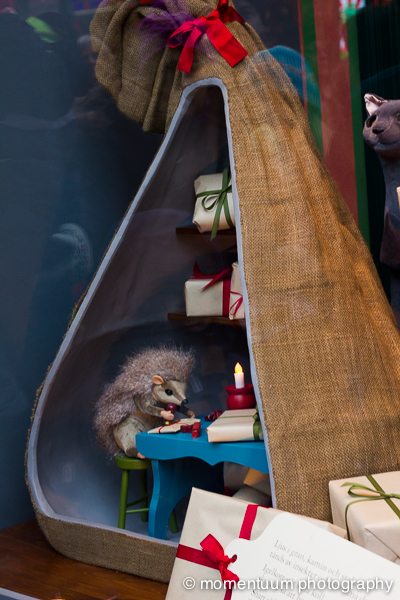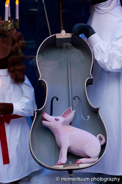 Anschliessend waren wir Schaufenster bestaunen bei Nordiska Kompaniet, einem sehr bekannten Kaufhaus (ein bisschen wie das Stockholmer Harrods). Ich wusste gar nicht, dass das jedes Jahr ein Highlight ist und die Leute kommen und sich das ansehen! Ich hatte ein paar hübsche Sterne und so weiter erwartet, aber nicht diese unglaublichen Installationen und Ideen – wirklich toll!
