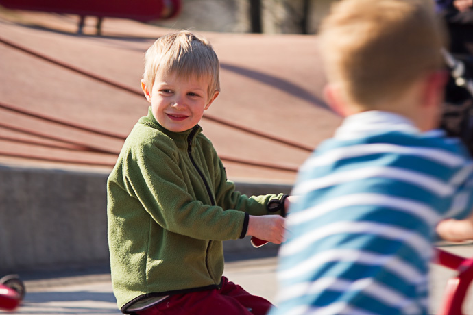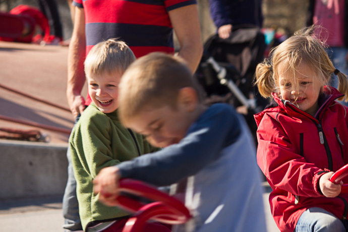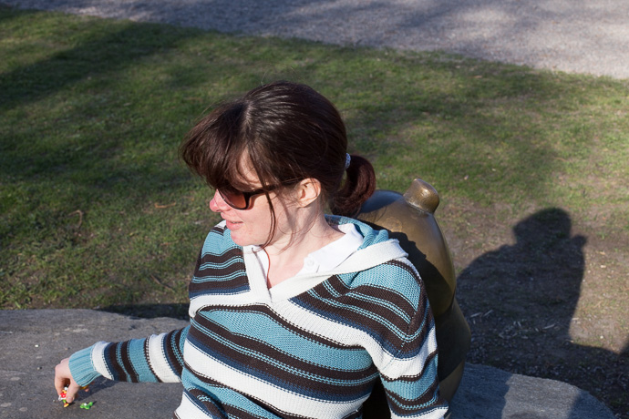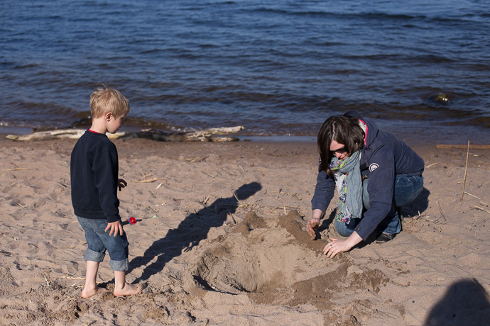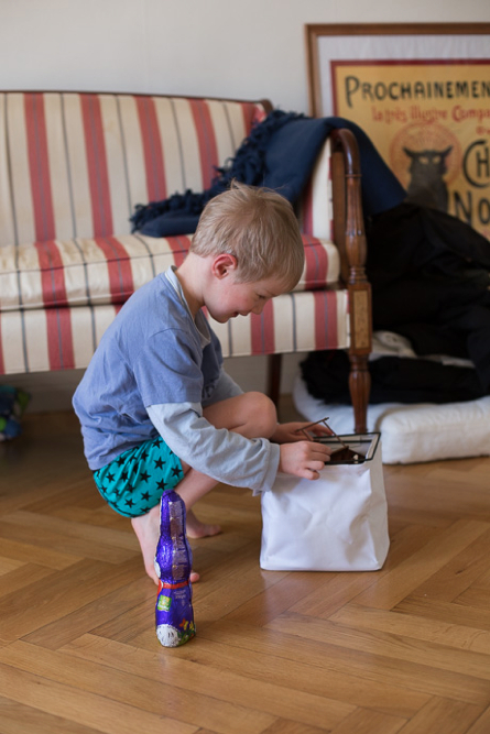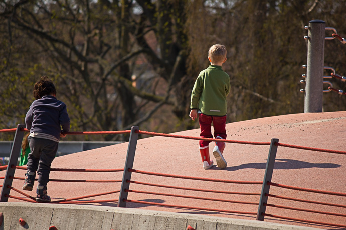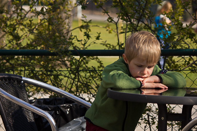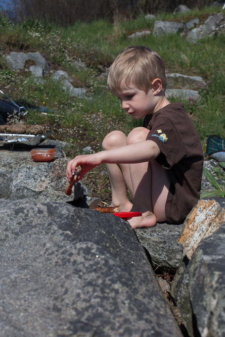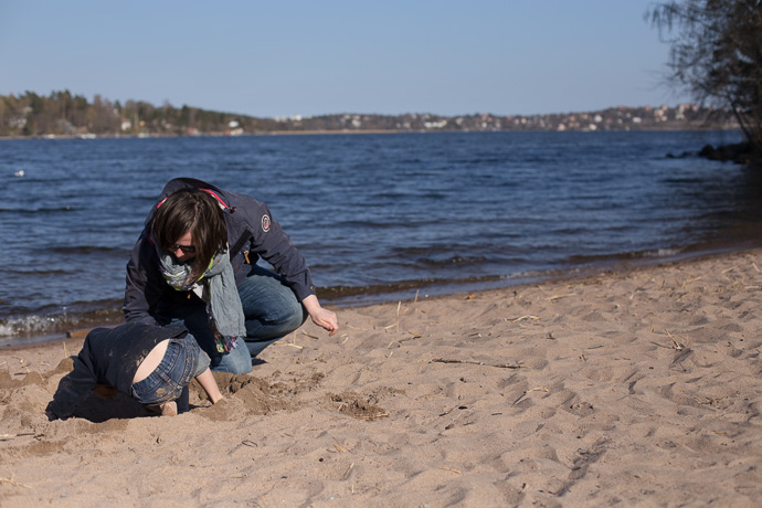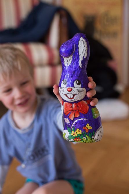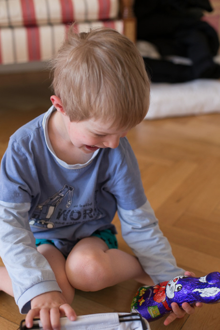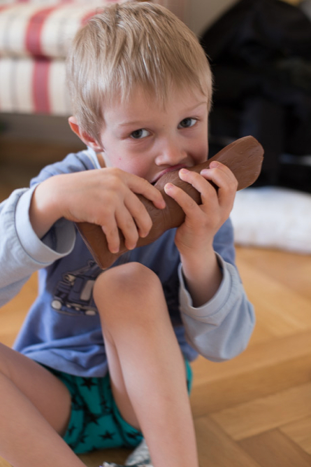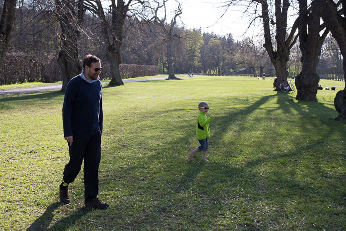 Ein anschliessendes Überraschungseier-Verstecken und -Suchen diente der Aufheiterung von Junior. Mama und Papa durften auch suchen (wie man sieht). Der Rückweg war etwas anstrengend, da wir den gemeinsam per Rad erledigten (auf dem Hinweg hatte ich den grössten Teil der Strecke mit Albert und Rad auf der Bahn verbracht). Ich bin völlig schlapp was Herz-Kreislauf-Kondition angeht und die hügelige Heimfahrt brachten mich – obwohl Albert bei Papa mitfuhr – ordentlich zum Schnaufen. Zuhause waren wir dann – alle ausser Albert – sofareif. Guter Ausflug, gutes Training. Aber ich war doch ganz froh, dass Montag nur Arbeitstag ohne Fahrradtour anstand ;-).