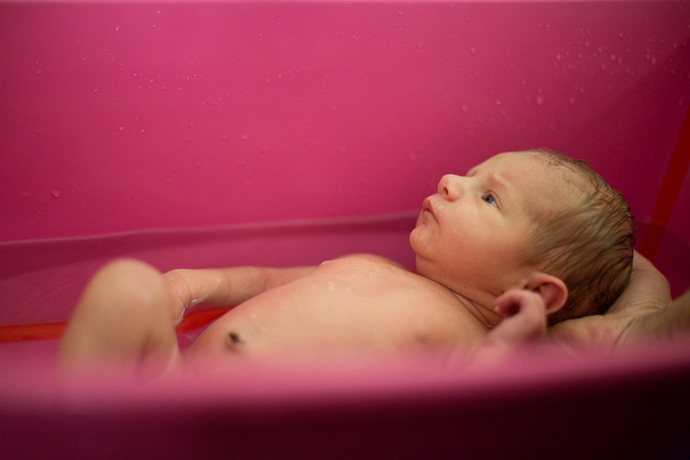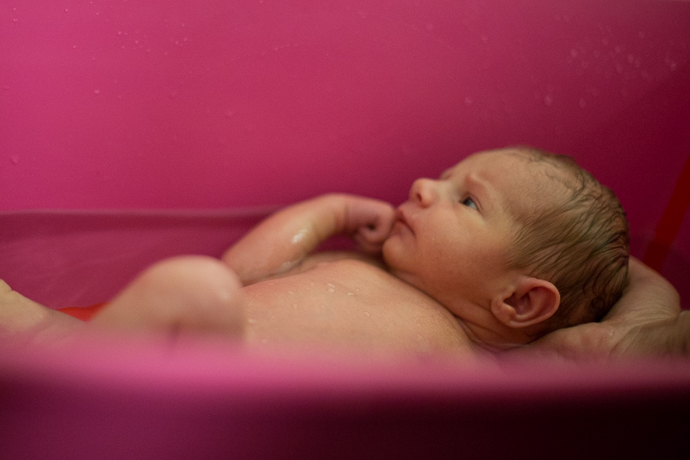 Gestern hatte ich mein erstes Bad. Am Anfang dachte ich, das wird bestimmt doof. Aber dann habe ich mir die Sache anders überlegt. Kein bisschen geweint, habe ich, sondern habe nur alles genau beobachtet. Gar nicht so schlecht, in dem warmen Wasser zu liegen….