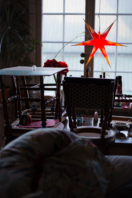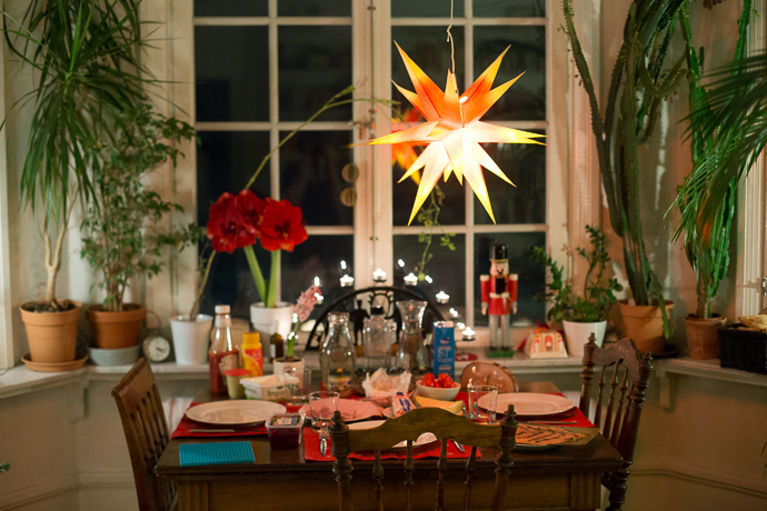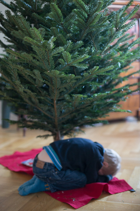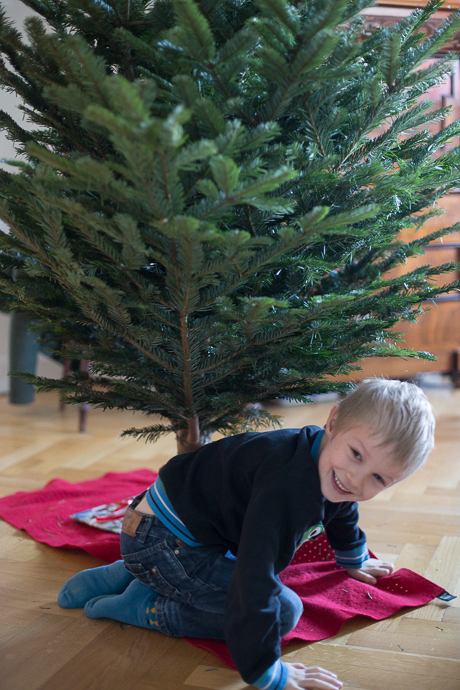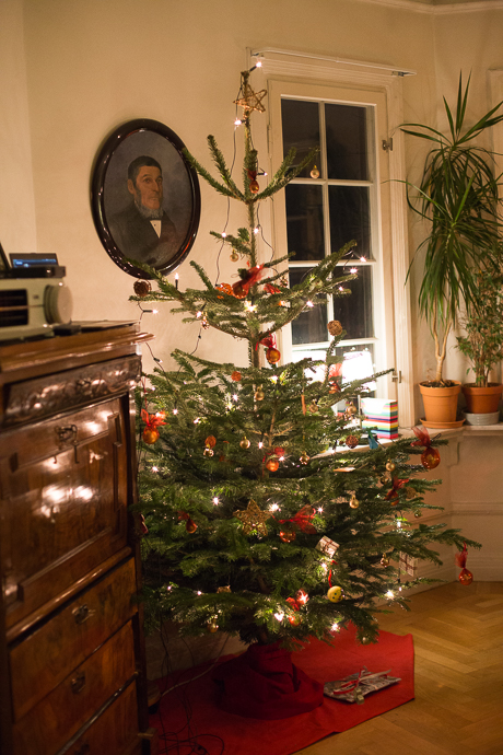 Ein schöner Tag. Mini hat uns 3 Stunden Ruhe am Mittag gegönnt, weil sie erstaunlich gut im Wagen geschlafen hatte. So konnten wir noch ausser Einkaufen, Wäsche waschen, Plätzchen backen, Aufräumen, Staubsaugen (naja, ok, das war der Saugroboter) UND den Baum schmücken. In Nicht-Baby-Haushalten wäre das wahrscheinlich schon an einem anderen Tag passiert, aber in unserer Baby-Welt sind wir froh, wenn wir das irgendwie schaffen. Und das braucht meist 2 Erwachsene UND einen gesunden Babyschlaf. Und heute hat das alles sehr schön geklappt. So, dass wir alle gemuetlich essen konnten und sich niemand gestresst oder genervt fühlen musste, weil irgendwer meinte, die Dinge müssten doch eigentlich so oder so laufen. Eigentlich ein Heiligabend wie man ihn sich nur wünschen kann. Und es gab sogar einen Hauch Schnee draussen (zumindest zwischendurch).