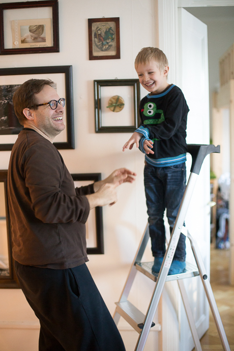 „Ich habe Albert zwei kleine Ecken ins Haar geschnitten!“ Aha. Macht ja nichts. So dachte ich. Bis ich die Ecken gesehen habe. Papa hatte durchaus praktisch gedacht, die langen Kotletten an den Schläfen gesehen, beherzt die Schere angesetzt – dem Sohne zu einem ordentlichen Aussehen verhelfen wollend – und dann waren sie eben ab. Ergebnis siehe unten. Mich hat allerdings etwas der Schlag getroffen. Ich konnte mir auch nicht so recht vorstellen, wie man eben mal schnell so gerade ins Haar reinschneiden kann. Naja. Einen beträchtlichen Teil des Abends habe ich versucht, die Gesamtkomposition des Haars anzupassen. Seitdem schaue ich mir jeden Tag an, welche Ungenauigkeiten ich da in Albert’s Haarschopf geschnitten habe und ärgere mich, dass ich das nicht besser kann. Etwas erbärmliches Ergebnis – siehe Bild ganz unten. Vielleicht sollte ich mal einen Kurs besuchen. „Haareschneiden fuer Muetter“ oder so. Oder die Scheren besser verstecken.