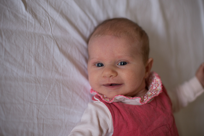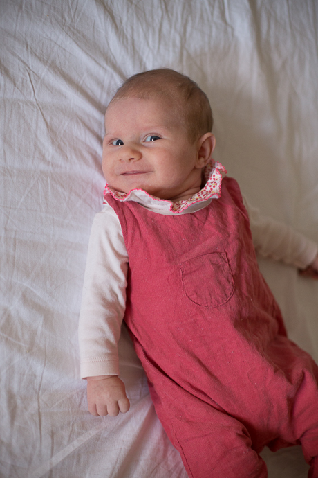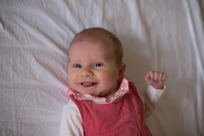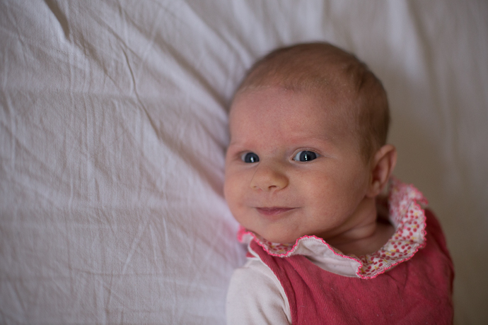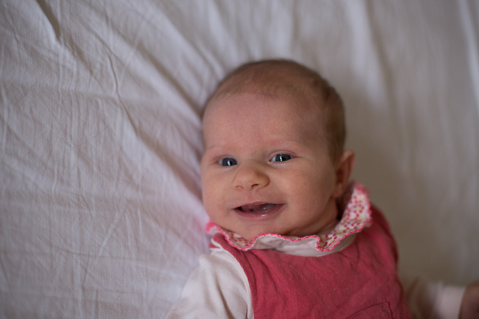 Emma ist jetzt 7 Wochen alt und bereits recht gut im Lächeln! 4405 g und 58 cm – alle Achtung, meine Dame :-)!