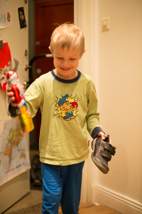 Wir haben gebacken (Emma im carrier, Albert hat gespielt) und dabei die Küche ordentlich verwüstet! Und in der Nacht kam der Nikolaus! Grosses Highlight: das Päckchen von Oma und Opa. Das wurde noch vor den Stiefeln ausgepackt und bejubelt. Vielen Dank nach Oberzella!