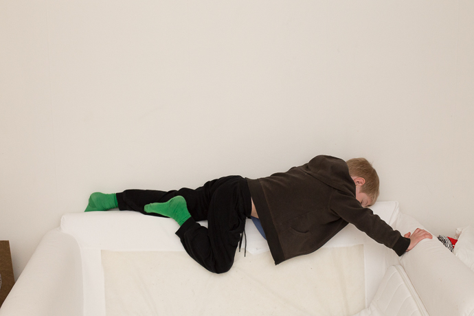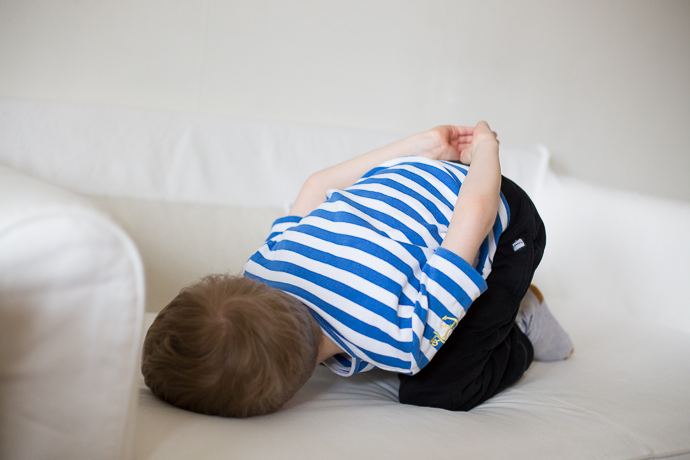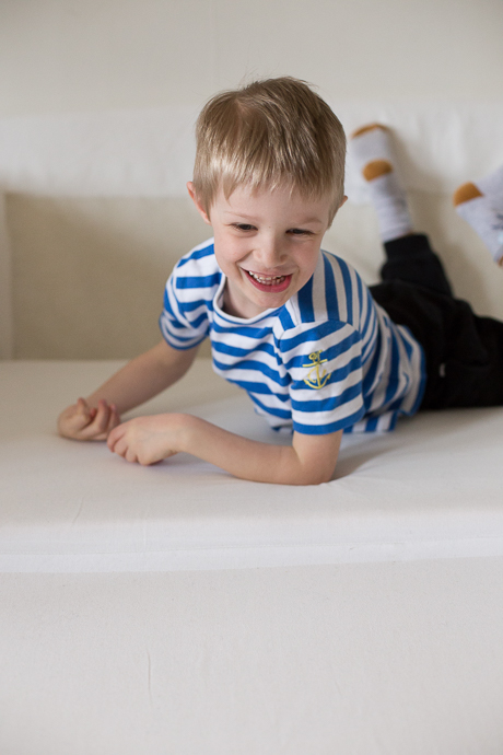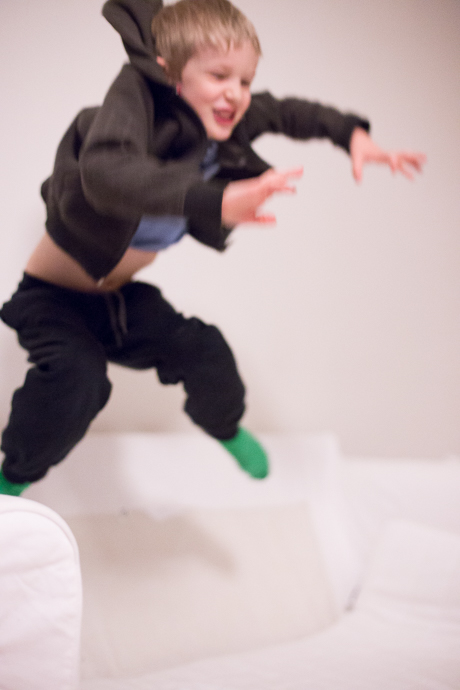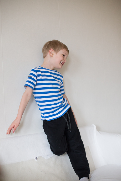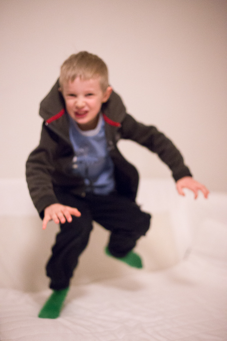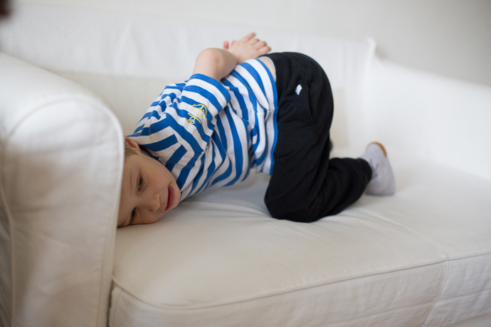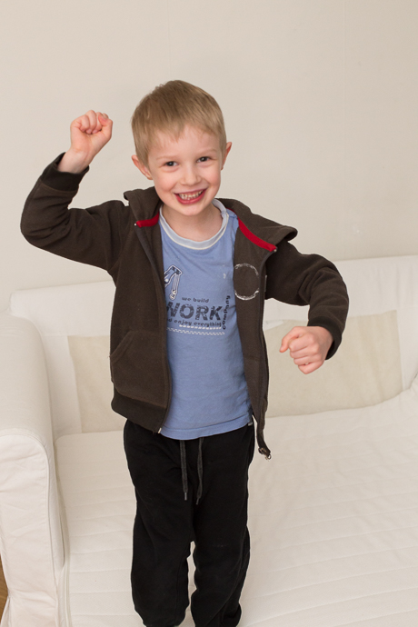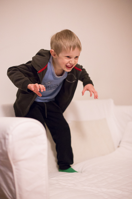Heute sprang er nur auf dem Sofa. Nach einer Woche Fieber und Mandelentzuendung fast wieder gesund (hoffen wir).