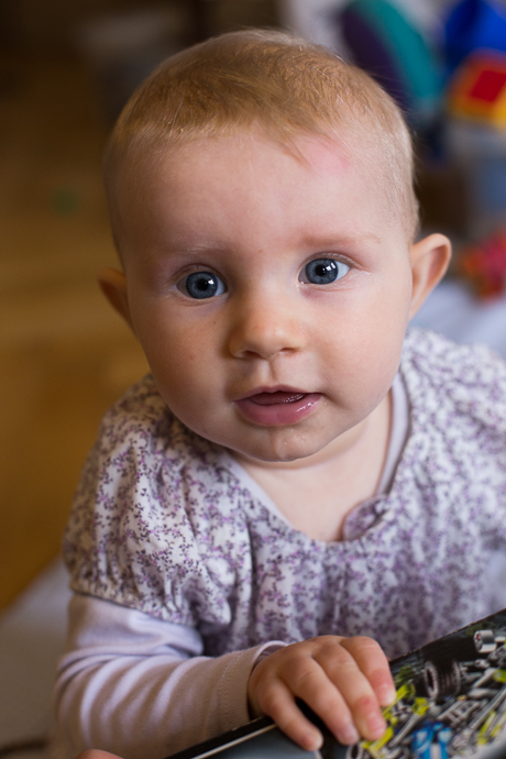Seit ungefähr 3 Tagen kann sich Emma alleine aufsetzen. Ausserdem schiebt sie sich im Sitzen irgendwie vorwärts, so dass man sich nicht mehr sicher sein kann, wo genau man die junge Dame antrifft.