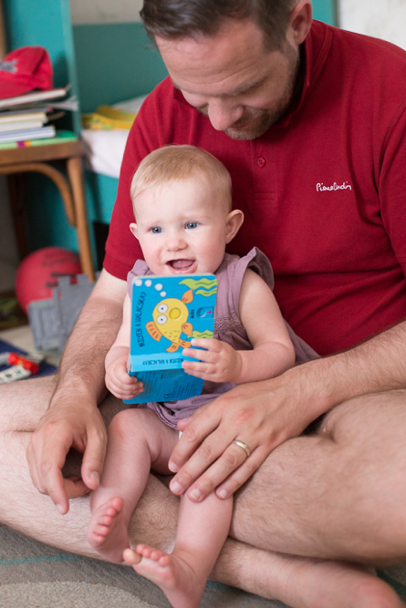 Papa hat von Budapest ein Buch für Emma mitgebracht. Ihr erstes „offizielles“ Buch! Denn neuerdings hat sie Interesse an den Dingern mit den Seiten. Und dieses Exemplar hier ist sehr nett gemacht, mit unterschiedlichen Pappteilen zum Verschieben oder Herausziehen und sich dahinter versteckenden Tieren.