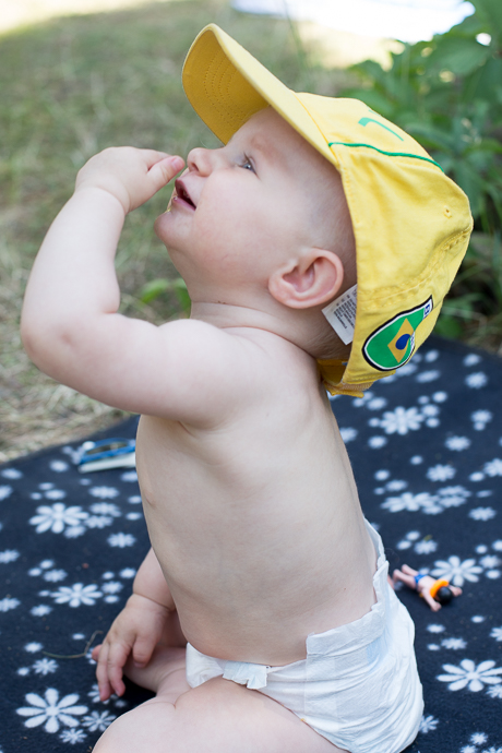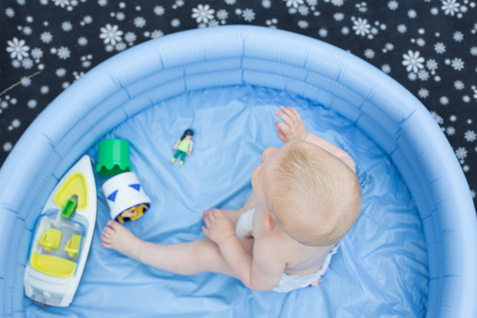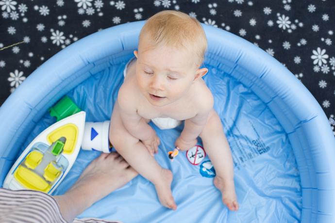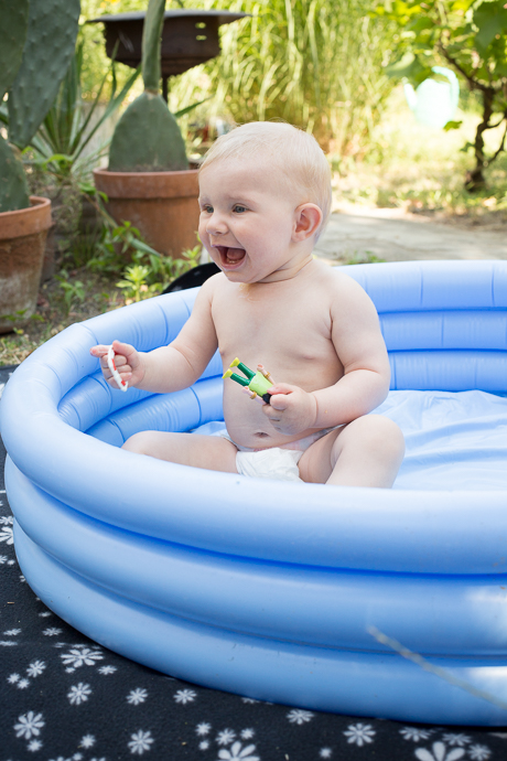 Emma fand das Planschbecken auch ohne Wasser interessant. Das Wasser ist dann später am Nachmittag noch dazugekommen. Interesse am Schlafen hat sie heute nicht, nach 45 Minuten Einschlafversuch, war sie immer noch topfit (ich nicht mehr). Nach einer Weile haben wir einen zweiten Versuch gestartet, da hat sie es immerhin nach 20 Minuten geschafft. Sie sprüht nur so vor Energie! Heute hat sie keine Zahnschmerzen und ist quietschvergnügt (im wahrsten Sinne des Wortes) dabei!