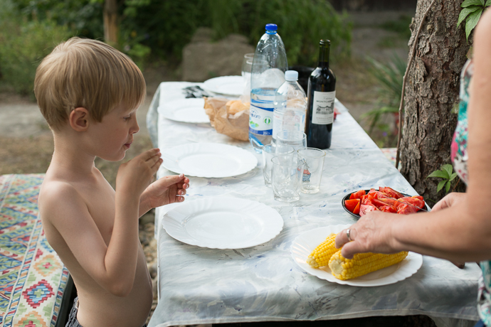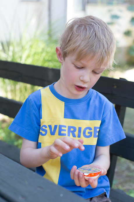 Heute im Garten. Albert hat ein Ü-Ei von Oma bekommen und einen Gürtel. Wunderbarerweise war in dem Ei wieder ein Angry Birds Wunderding. Seitdem er eines in Budapest bekommen hat mit ähnlichem Inhalt ist die Begeisterung sehr gross. Er vertreibt sich die Zeit mit allerlei Wasserspielen, Schwertereien mit Papa, Kartenspielen, Lesen mit Mama und einem Marktbesuch mit Oma. Man möchte meinen, dass er neue Batterien bekommen hat, so dreht er sich und hüpft und zappelt!