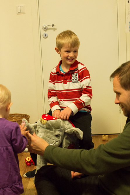 Es ist vollbracht. Magna cum laude fuer Papa. Zwei kranke Kinder fuer Mama. Und nun endlich Wochenende und alle sind da! Das wird gefeiert…mit anderen Worten die Eltern sind völlig erledigt und die Kinder zappeln in einer Tour. Trotzdem war´s (unter anderem) auch schön. An Kuchen hat es nicht gemangelt: Der Biskuitboden in der kleinen Backform (erstes Mal verwendet) wuchs wie der Teig Märchen von dem suessen Brei und hinterliess Massen an Schichten (siehe Foto). Und das Geschenk fuer Emma war elefantastisch. Trörö!!