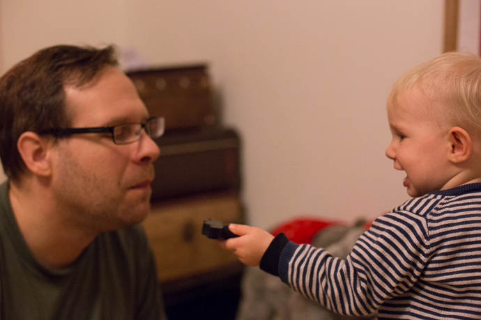 Wenn es kalt wird – obwohl es das nicht gerade sonderlich ist – muss man sich vernünftigt anziehen. Daher hat der kleine Mönch heute wieder seine Robe angelegt. Damit es warm bleibt, stecken die Hände in überdimensional grossen Handschuhen. Rot. Man muss ja ein Statement machen. Hier wird gerade der Nau angeschaltet. Soll er doch mal das Wohnzimmer schön saugen, während Papa und Emma unterwegs sind!