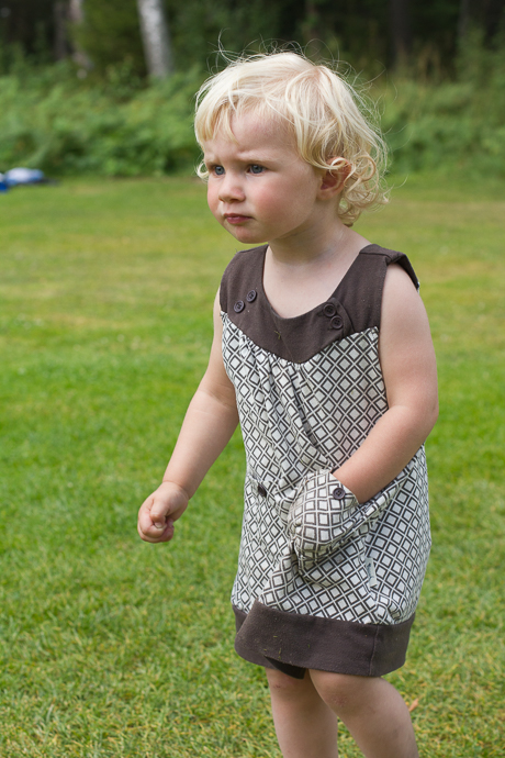 Albert war ein grosser Held im Wasser und schwamm mit den Schwimmflügeln allein bis zu einer Platform im See, von der er dann mehrfach beherzt wieder ins Wasser sprang. Emma war angetan von den Enten (die sie, mitsamt ihrem Kleid, bis ins Wasser jagte) und von einem Hund, den sie partout mit Gras füttern wollte. Der Hund ist nicht auf den Bildern, ihre Grassammelaktion aber sehr wohl.