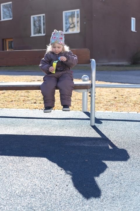 Obwohl es doch auch noch überraschende Schneefälle geben kann, macht sich der Frühling bemerkbar. Wenn die Sonne im Norden scheint und der Winter (fast) vorbei ist, dann ist es wirklich hell. Gleissendes Licht, könnte man sagen. Ich finde es überwältigend und bin mir sicher, diesen Teil von Schweden werde ich in Belgien schwer vermissen. Aber noch liegen gut 3 Monate vor uns bevor wir uns Richtung Flandern begeben und bis dahin, das verspreche ich mir, werde ich noch die Sonne geniessen – wenn sie zu sehen ist. Spielplatzminuten wird es sicher noch sehr viele geben!