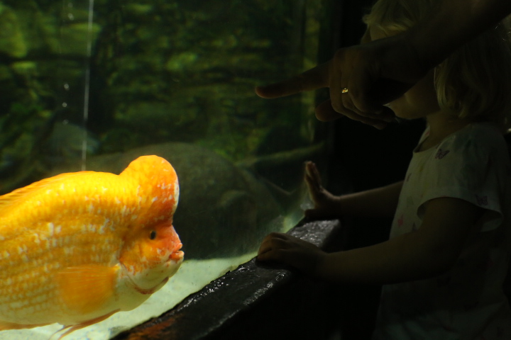 Wir sind mit dem Auto nach Ungarn gefahren, die Fahrt aufgeteilt auf 2 Tage. Strömender Regen über Stunden und an beiden Reisetagen, Unfälle vor uns, Stau. Es war nicht besonders schön und wir waren froh, als wir angekommen waren. Umso besser erging es uns – und besonders den Kindern – als wir gestern in die Tiefe der Ozeane eingetaucht sind. Dabei haben wir alles von der trockenen Seite des Glases bestaunt im Tropicarium, einem Aquarium, was nicht weit von Oma Teréz in einem Einkaufszentrum zu finden ist. Trotz teilweise sehr dunkler (unbearbeiteter) Bilder kann man die Begeisterung der Kinder nicht übersehen.