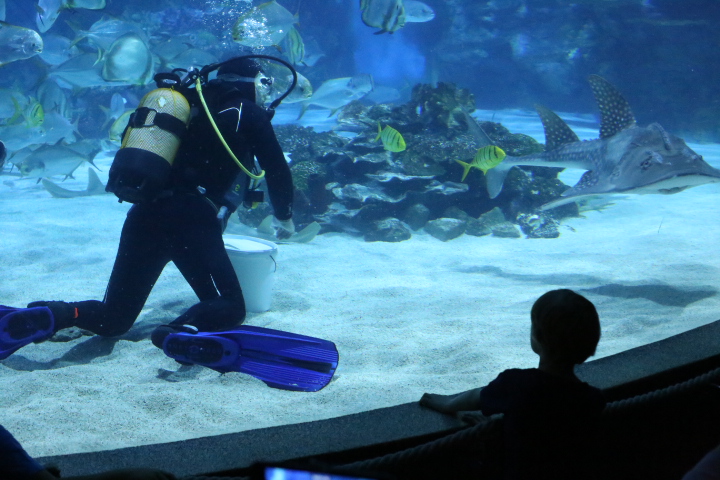 Alberts grosser Favourit war das Rochenstreicheln, er war kaum wegzubewegen von dem Rochenbecken…