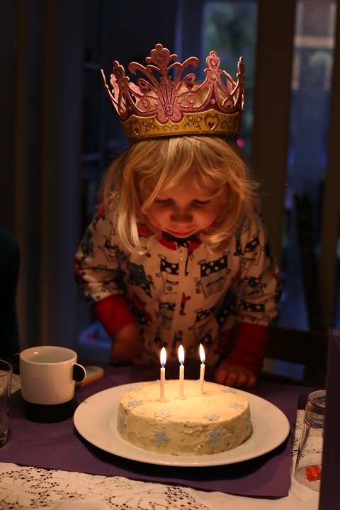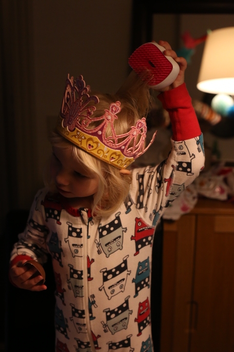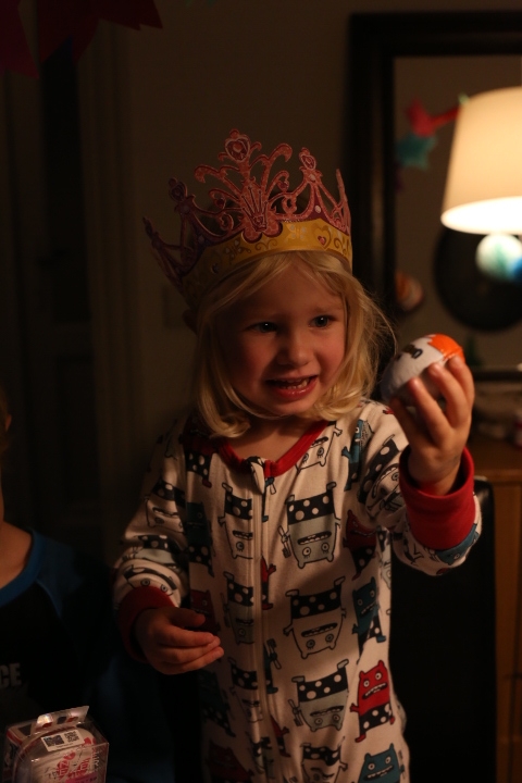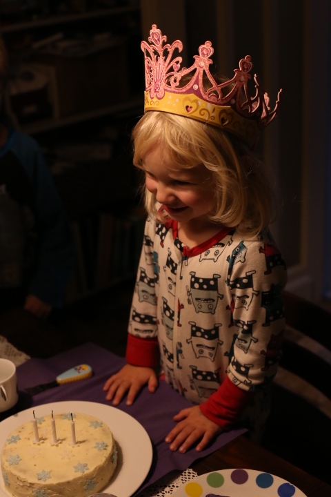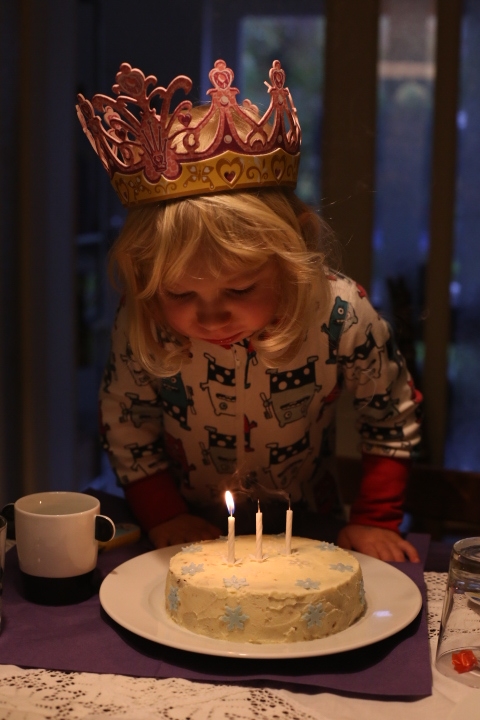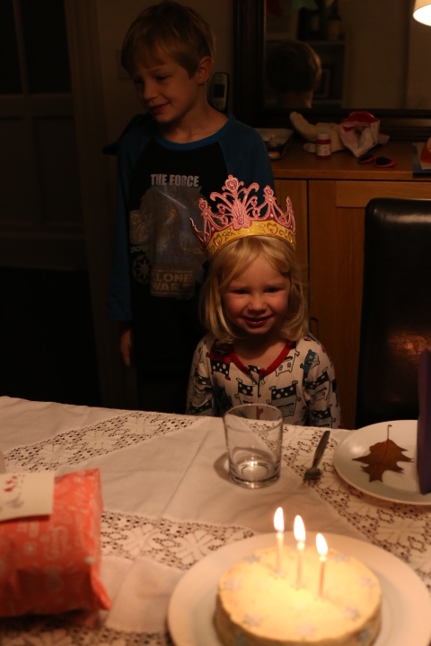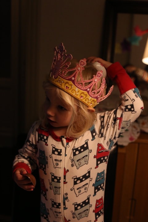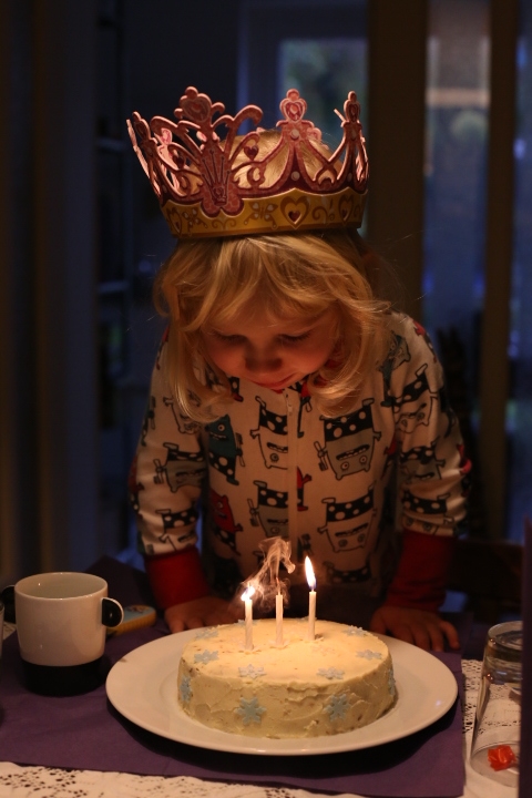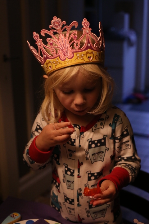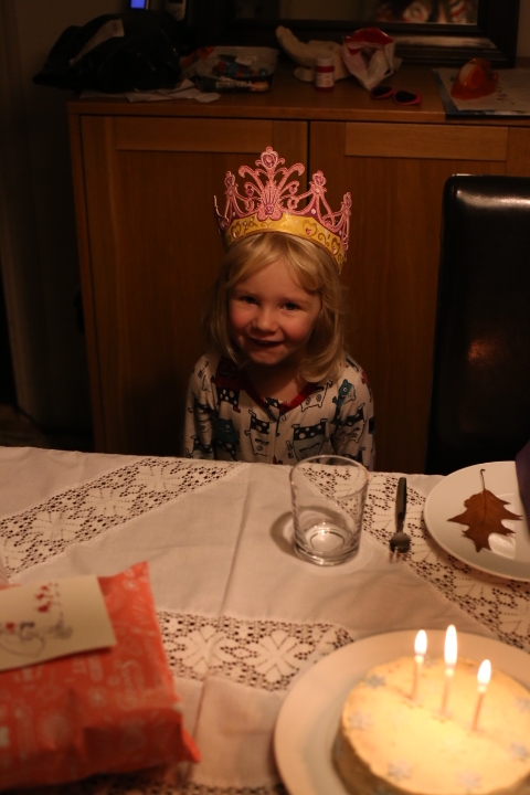 Etwas dunkel auf den Fotos, aber die Freude ist nicht zu übersehen! Ein Anruf von Papa aus Rom, gefolgt von Kuchen und Geschenken. Eine Krone durfte auch nicht fehlen. Alles Liebe zum Geburtstag, Emma!