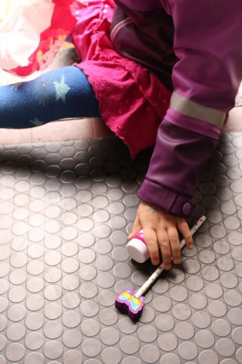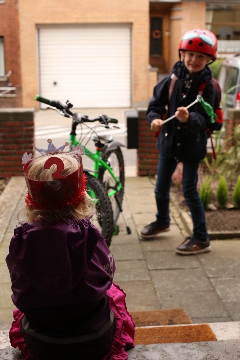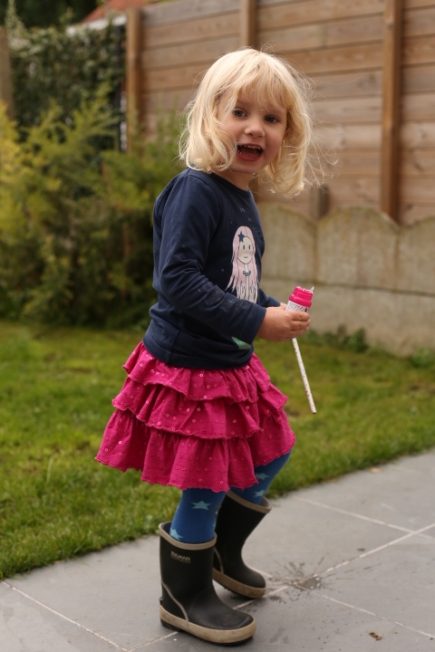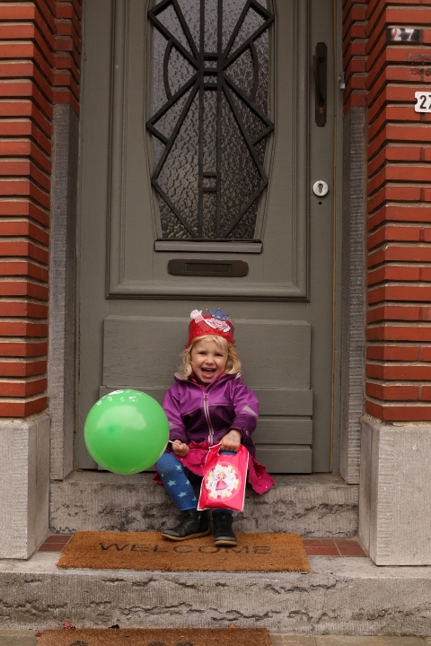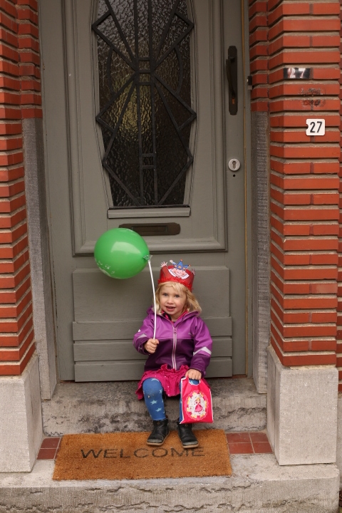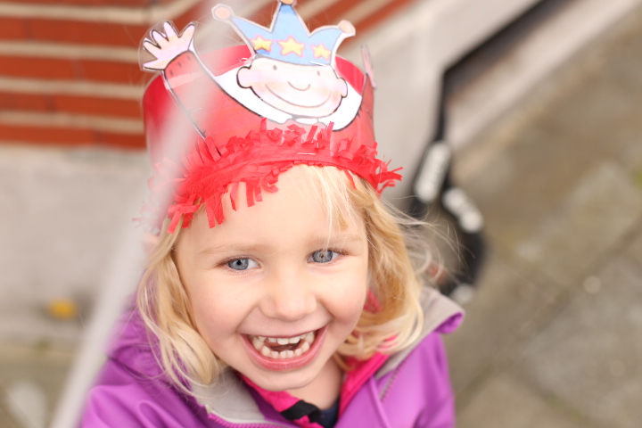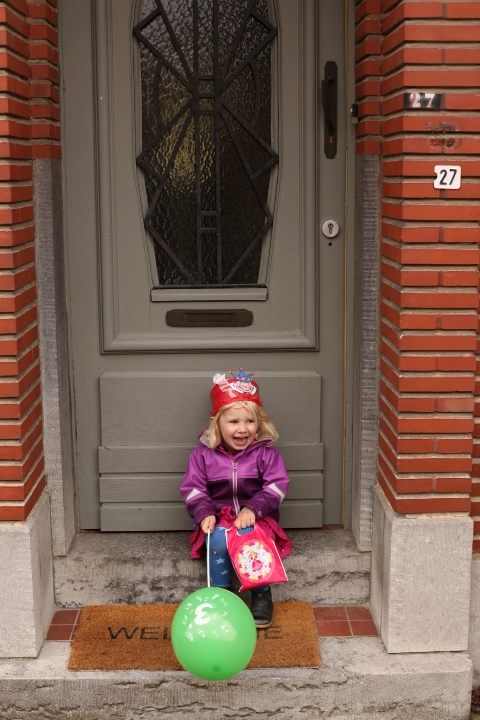 Nachdem es am Freitagmorgen einen ordentlichen Wutausbruch gab – erst von Emma, dann von mir – lief danach in der Schule alles wie geschmiert. Um 15:45 stolzierte eine sehr stolze gekrönte Emma aus dem Klassenzimmer, in der einen Hand einen grünen Luftballong mit einer ordentlich großen 3 drauf, in der anderen eine Tüte mit einer Miniseifenblasendose und einem Stift mit Schmetterlingsradiergummiaufsatz (meine Güte…ist das ein Wort?!?). Die Freude wurde nur dann etwas getrübt, als der Luftballong nach dem kurzen Plausch mit der Nachbarin dem Hagebuttenstrauch zum Opfer fiel. Das Erlebnis war so nachhaltig, dass der grüne Fetzen des Luftballons dann noch einige Male an den Dornen angebracht werden musste. Albert stellte sich bereitwillig zur Verfügung, bei dieser Unternehmung unterstützend zur Seite zu stehen.