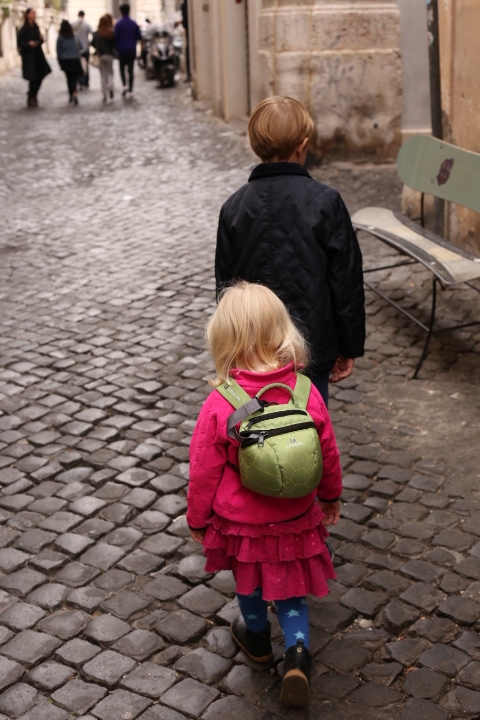 Nach einem erholsamen Mittagsschlaf ging es nach Trastevere. Vorher gab es für die größeren Teilnehmer einen Kaffee in der Bar und für die kleineren ein Eis. Papa und Albert nahmen sich eine Stunde Zeit, die Kirche Sancta Maria in Trastevere anzusehen. Emma und ich waren teilweise auf eigener Entdeckungstour in der Kirche und dann auf einem Spielplatz in der Nähe. Auf dem Rückweg entdeckten wir Ape50, seit passend zu Albert’s Spitznamen „Apé“, den er seit der Zeit hat, zu der Emma noch nicht seinen Namen aussprechen konnte und sich dieser Kurzform bediente :-).