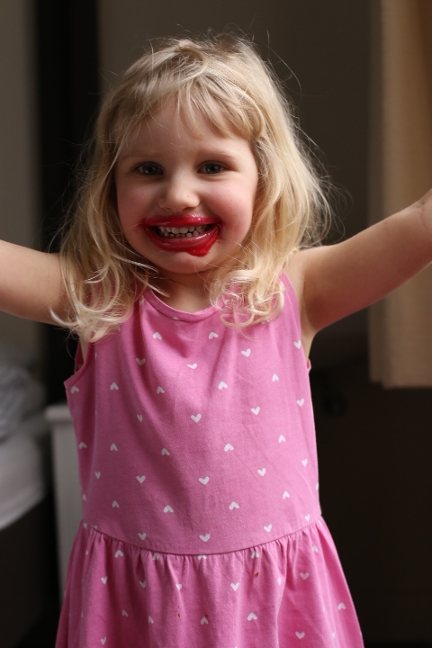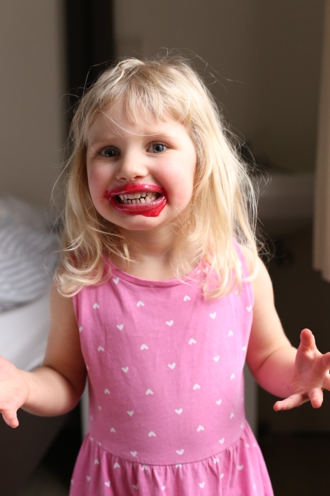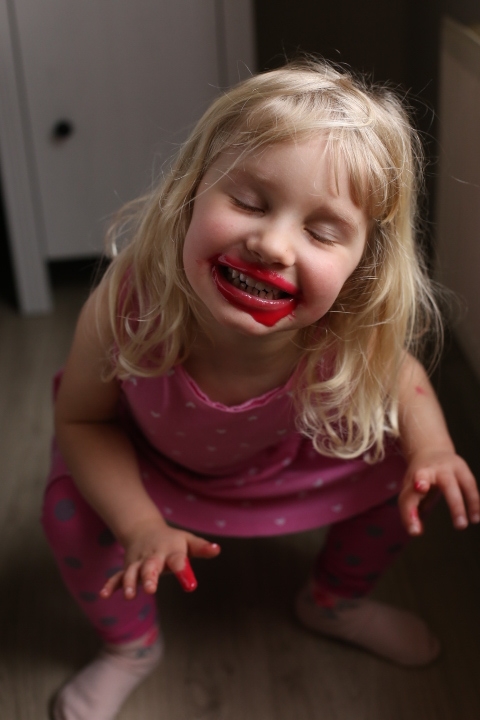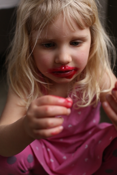 Emma hat vor Kurzem ein Lipgloss zur Lebenpflege von Papa bekommen. Rot. Weil Mama auch eins zum Geburtstag bekommt. Und wenn einem so ein kleines bisschen langweilig ist, kann man ja mal etwas tiefer in den Topf greifen und die Lippen so richtig gut pflegen, oder?