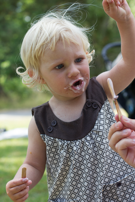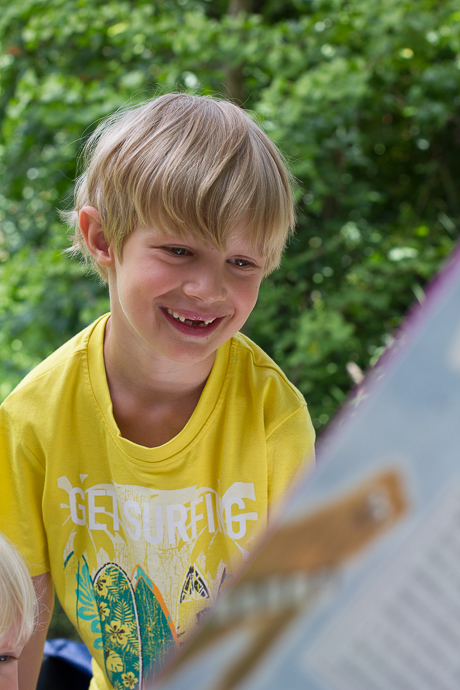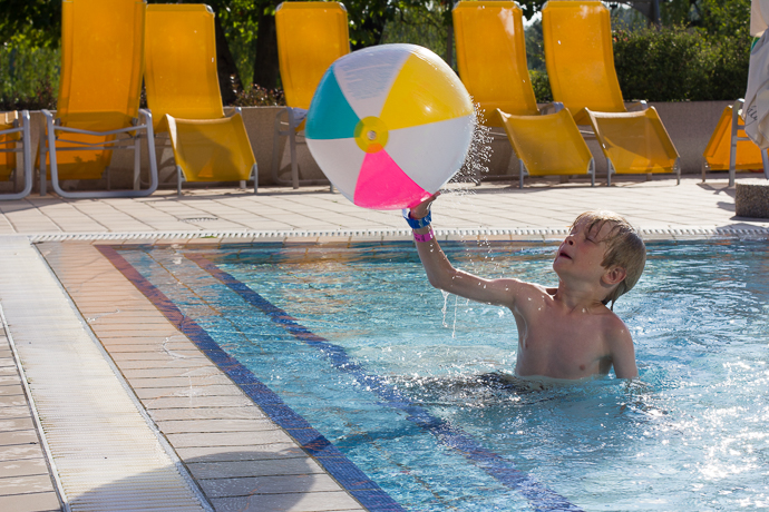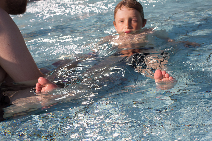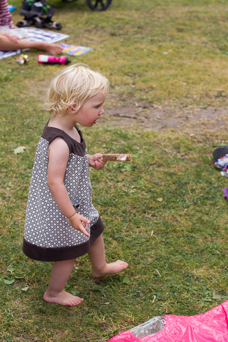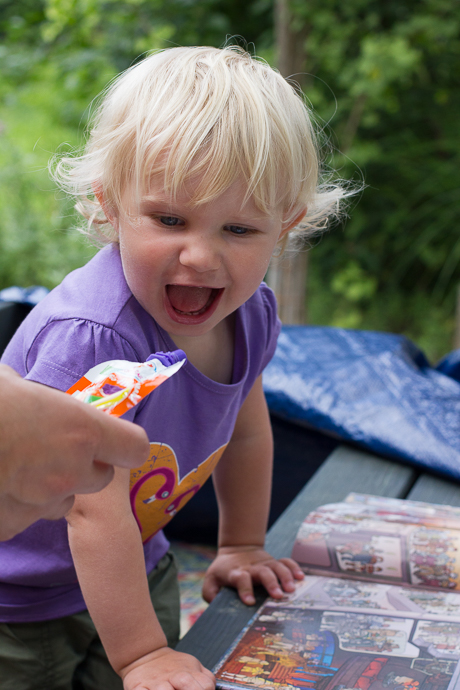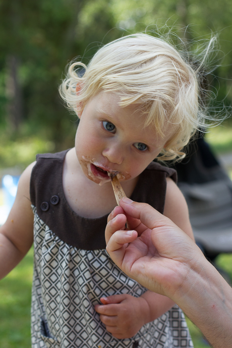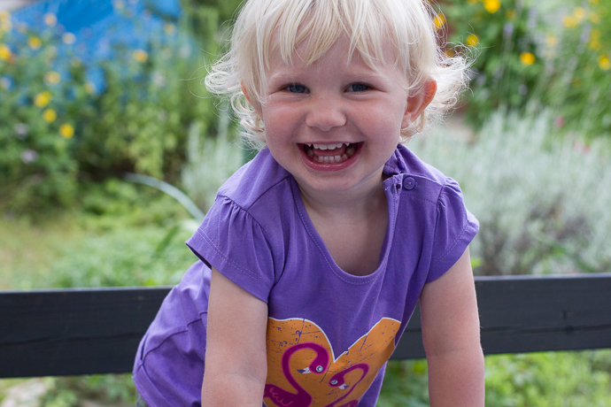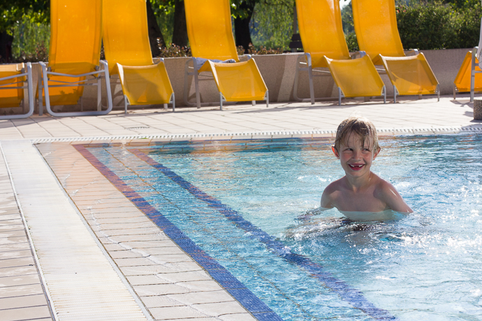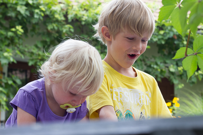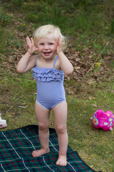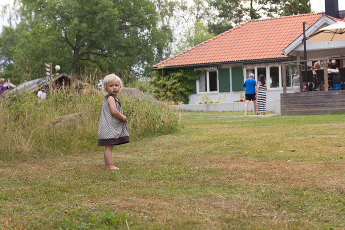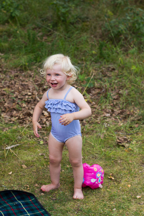 Albert war ein grosser Held im Wasser und schwamm mit den Schwimmflügeln allein bis zu einer Platform im See, von der er dann mehrfach beherzt wieder ins Wasser sprang. Emma war angetan von den Enten (die sie, mitsamt ihrem Kleid, bis ins Wasser jagte) und von einem Hund, den sie partout mit Gras füttern wollte. Der Hund ist nicht auf den Bildern, ihre Grassammelaktion aber sehr wohl.