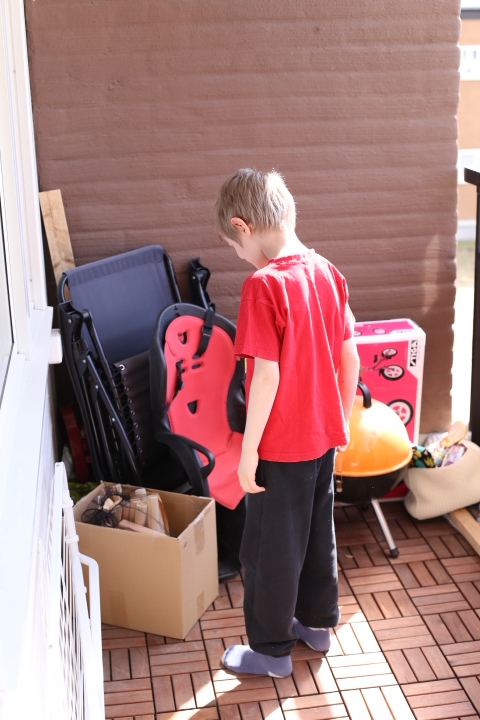 Heute haben wir Wäsche gewaschen und die Handtücher sind noch nicht wieder im Badezimmer. „Mama“, sagt Albert als er duschen gehen will, „ich brauche noch das weiße Dingsda (Vorleger) zum drauftreten.“ Und mit dem Blick auf die leeren Flächen ohne Handtücher meint er “ Irgendwie ist das ganz schön ausgeraubt hier.“