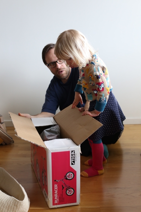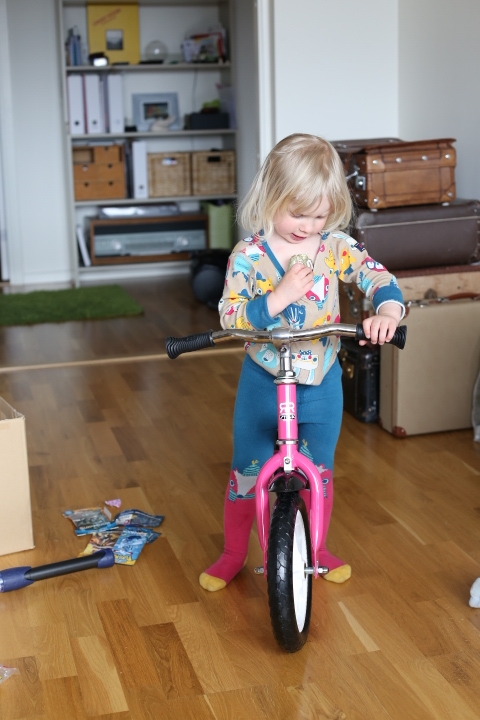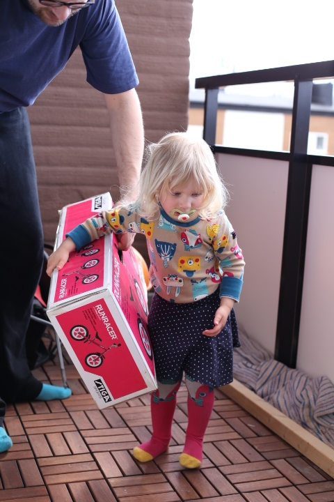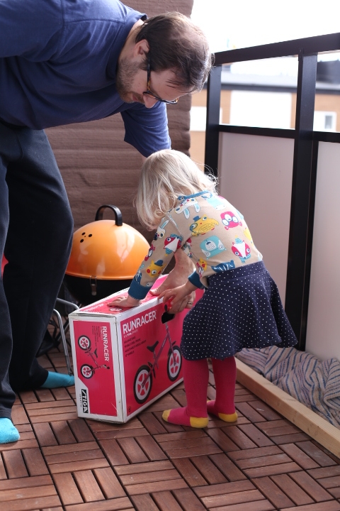 Der Osterhase ist bei uns ein Wunderhase, der es mit Leichtigkeit schafft, einen Satz auf den Balkon der 1. Stockes zu machen und unseren Kindern ein Ostergeschenk zu hinterlassen. Man bedenke, dass derselbe Hase auch keinerlei Probleme damit hat, eine Box mit einem Laufrad an selbige Stelle zu liefern. Ich bewundere die Kondition. Sollte mir bei Gelegenheit einmal ein Beispiel nehmen! Die Kinder waren angetan von dem Hasen und den Geschenken und Albert hatte dem Gesellen sogar ein Bild gemalt. Vorher hatte er mich gefragt, ob er dem Hasen denn ein Bild davon malen sollte, wie Jesus aufgehangen wurde. Ich hatte Schwierigkeiten, eine passende Antwort zu finden.