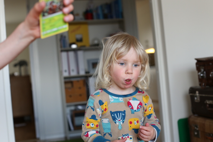 Papa liest Emma ein Buch auf Schwedisch vor. „Nem! Deutsch!“ ruft sie dann.
