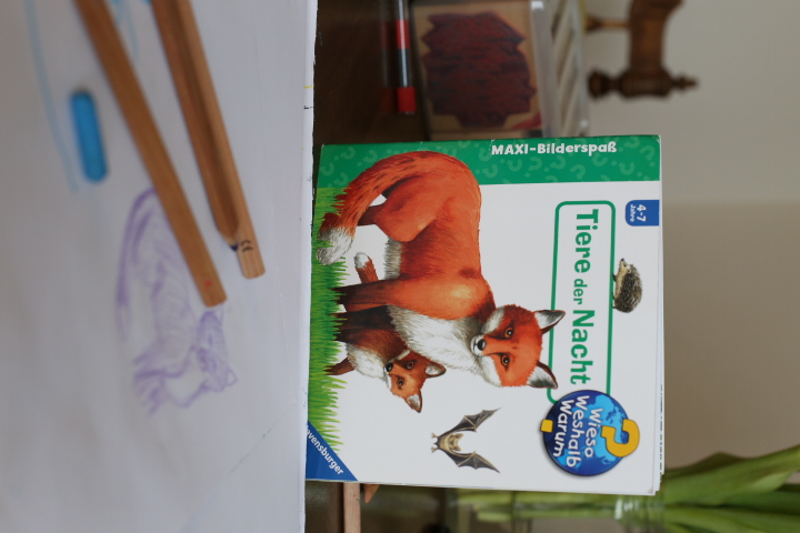 Zur Erklärung. Um Emma die Sache mit dem „Trockenwerden“ zu erleichtern, borge ich fleissig Bücher in der Bibliothek aus, die sich mit dem Thema beschäftigen und irgendeine Geschichte dazu liefern. Bei einem Buch, was ich eigentlich fast ein bisschen doof finde, hat Emma total angebissen. Vielleicht besonders, weil es am Ende des Buches eine kleine Spiegelfläche gibt und der Hase, der Haupttopfgeher im Buch fragt: „Mhm, mir scheint als fehlt hier noch jemand….(der noch nicht auf dem Topf sitzt). Bist das du?“ Und Emma schaut mit einer unglaublichen Begeisterung in den „Spiegel“ im Buch und findet sich (oder Mama). Der Hase lädt dann auch Emma ein zum Topf zu kommen und dort ein Weilchen zu sitzen. Meist ist unsere Topfrunde (oder vielmehr Toilettenrunde) dann schon beendet, weil das Buch immer vor dem Schlafen gelesen wird. Emma findet die Sache, dass sich eine interessante Kombination von Tieren vom Picknick im Grünen erhebt und sich Richtung Topf begibt sehr charmant. Wir benennen jedes Tier und schauen zu, wie sie zu ihrem individuellen Topf laufen und dort sitzen oder auch mal runterfallen. Zu diesem „Topfclub“ gehört auch der Triceratops(dino). Ich wollte mal testen, ob sie „Triceratops“ lernen kann. Kein Problem. Und, wie man hört, findet sie das Wort sehr amüsant. Ich auch…besonders wenn Emma es artikuliert!