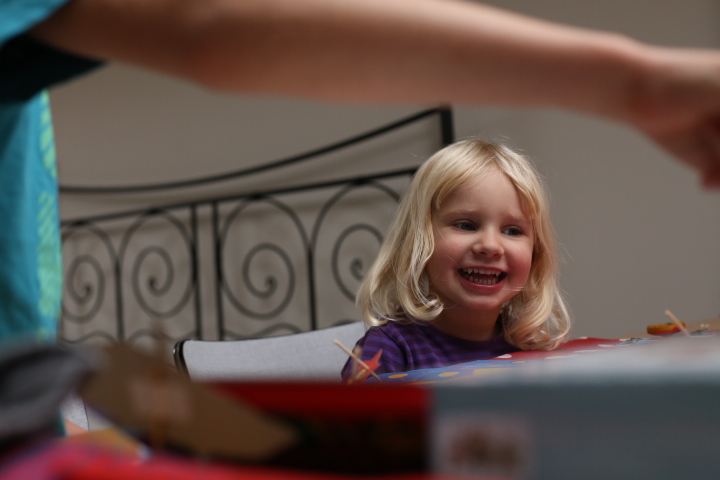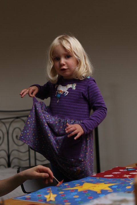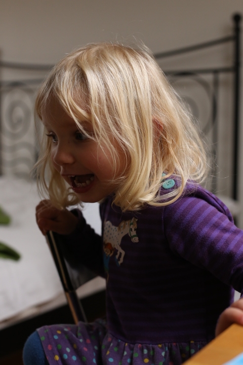 Der Blitz ist wieder im Einsatz und somit das Ringen um gutes Licht. Und Emma isst Schokoladenaufstrich zum Frühstück…