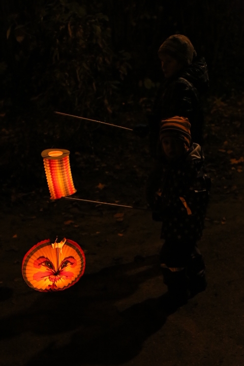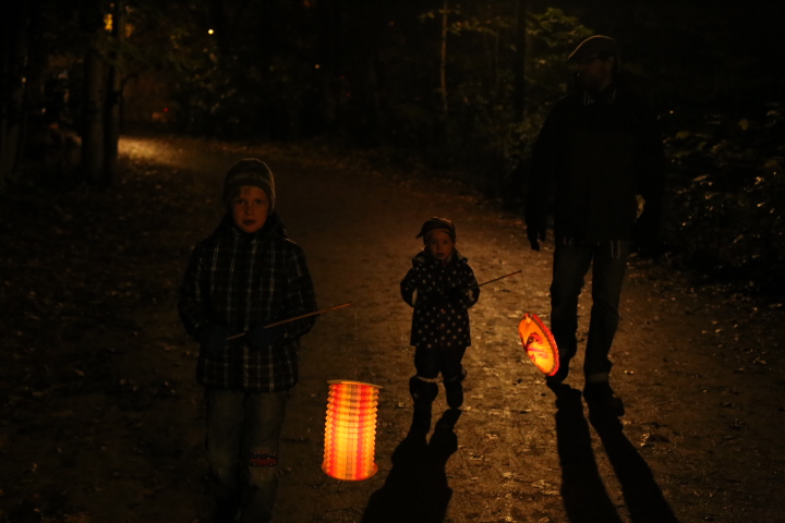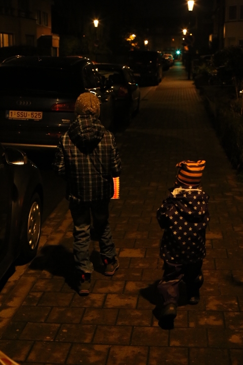 Am Martinstag haben wir einen Mini-Umzug gemacht. Zu viert waren wir wohl etwas unterbesetzt im Vergleich zu ordentlichen Umzügen aber der gute Wille zählt und besonders die Kinder waren beherzt dabei. Leider fehlte uns manchmal etwas der Liedtext aber nichtdestotrotz haben wir eifrig gesungen. Bis auf Papa, der hat sich verdächtig zurückgehalten. Dann ist Albert’s Laterne beim etwas stärkeren Schwenken in Flammen aufgegangen und ich habe die Flamme gelöscht. Erst mit Pusten, dann mit der Fußsohle. Rabiat, meint Papa. Aber immerhin, die Flamme war aus und die Laterne konnte noch weiterverwendet werden. Vielleicht finden wir ja für nächstes Jahr noch ein paar Mitstreiter für den Umzug?