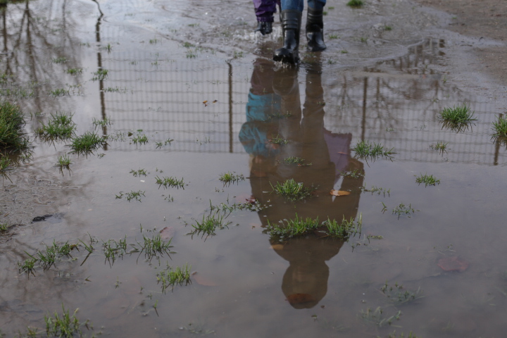 Ein bisschen draußen gewesen. Quasi um die Ecke auf dem Spielplatz. Dort gab es Licht und Wasser, Baumstämme und Zweige – was braucht man mehr?